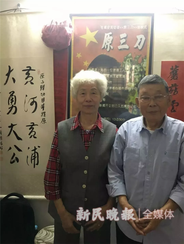 24日,记者走进原公浦位于闵行区梅陇镇梅陇一村一间60平米老公房的家里,不足7平方米的客厅墙上挂着两幅字和一张电视海报,“原三刀”三个字直入眼帘,两幅字分别是“黄河黄浦 大勇大公”和“黄浦江边男子汉 蘑菇云下国公人”,里面均藏着“公浦”两字。